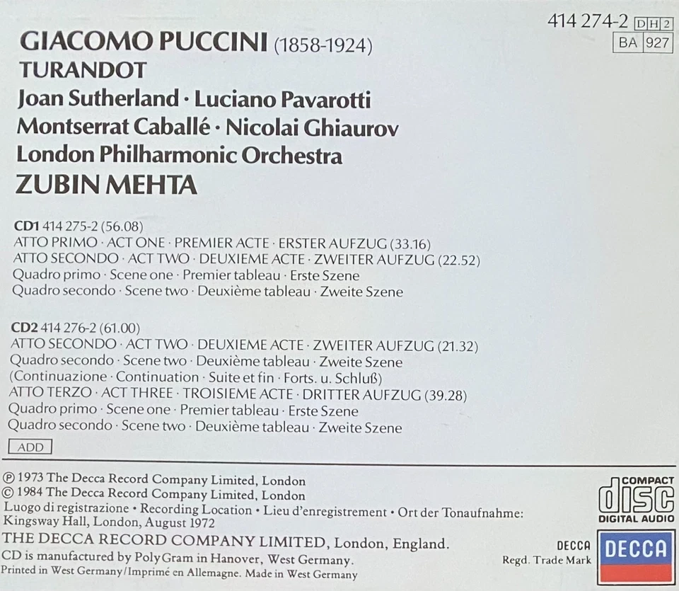 1-7.1 «Non Piangere, Liù!» (Calaf) 2:17